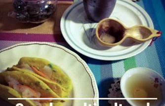 Para festejar um chá branco xpto e um serviço de chá tradicional, montei um boneco diferente: . Taco de grão com kimchi. . Chá branco (moonlight white). . As ervinhas do chá estão apenas 5 segundos em água a ferver antes deste ir para o pequeno bule (à medida da mini chaleira de vidro) e