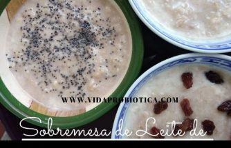 SOBREMESA DE LEITE DE ARROZ E BANANA . INGREDIENTES: . * Resíduo da preparação do leite de amêndoa. * 1/2 banana grande pouco madura (ou 1 pequena) * Kefir (leite de amêndoa) . . PARA DECORAÇÃO: * Passas * Sementes de papoila . . . PREPARAÇÃO: . 1. Ao coar o leite de amêndoa caseiro,