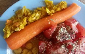 Hora de almoço e uns minutos para improvisar algo mastigável. 🙂 É nestas alturas que uns fermentados ajudam a compor a coisa. 🙂 . . Tremoços e azeitonas com uma pitada de caril; . 2 tomates com azeite, pimenta, oregãos; . 1 cenoura; . Kimchi q.b. . . Para terminar… No copo: Tibicos, Chia e