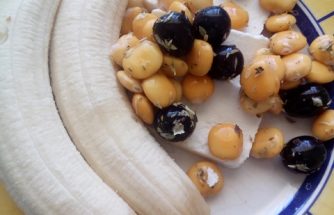 1A refeição do dia -> Banana, azeitonas, tremoços, queijo